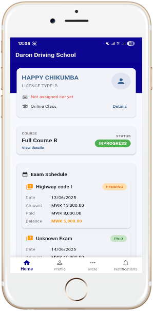 Welcome to the Mbira DSMS student app! For Daron Driving School